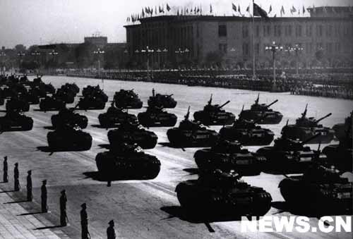 向着工业化飞跃前进的伟大祖国,给了人民解放军各种现代化武器装备。受阅各部队的装备中最新式自动步枪、大炮、坦克、高速度的喷气歼击机,都是祖国制造出来的。