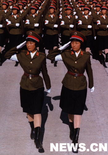 英姿飒爽的女卫生兵是建国以来第一次出现在阅兵序列中。第七排的排头兵是朝鲜族女战士康辉。1957年国庆节,她的父亲参加了首都的阅兵式。现在,她又成为第一批受阅女兵的一员,真是幸福的两代人。观礼台上,来自边疆的少数民族观礼代表们知道女卫生兵方队中还有满、蒙古、回、壮、彝、鄂温克、达斡尔族姐妹,高兴地向女兵方队鼓掌、致意。