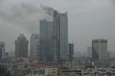 4月19日上午,南京市山西路军人俱乐部内的中环国际大厦发生大火,大火从大楼南侧底部开始燃烧,11点15左右消防车才到现场,至11点半,大楼顶部开始着火燃烧,目前还不清楚是否有伤亡。记者发稿前,南京市全市四面八方响起了消防车的警报声。(本网记者 丁国锋)