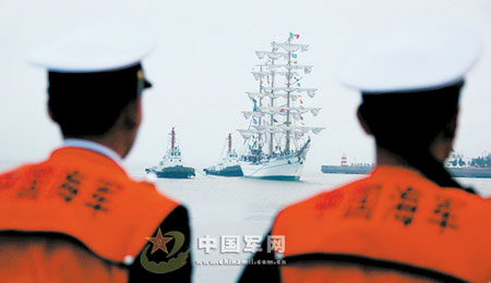 彩旗在风中飘扬,礼炮在空中响起。4月18日晚7时许,美丽的青岛港迎来了参加中国海军60周年庆典的第一位“客人”——墨西哥的“夸乌特莫克”号风帆训练舰。庆祝中国海军成立60周年多国海军活动,由此拉开了帷幕。