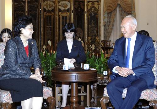 中新网4月26日电 正在新加坡访问的中国国务委员刘延东25日在新加坡总统府会见了新加坡内阁资政李光耀。