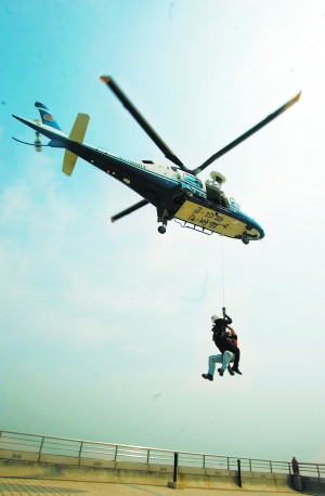 在此次的超高层建筑灭火演习中,北京消防、交管、急救等部门通力配合,并首次动用警用直升机参与抢险救援。消防部门表示,这次演练将为今后类似火灾扑救积累重要经验。(记者安然)