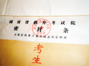 昨天,记者还从罗彩霞处得到了她2004年档案袋的一组照片。档案袋正面上方有湖南省教育考试院的密封条和考试院的印章,值得注意的是,密封条的下方还有一层相同的密封条,说明此档案袋曾被人拆阅过。档案背面贴有2004年罗彩霞的高考志愿表,经罗彩霞证实,背面的签名是她本人的。