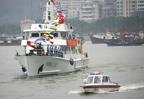 据了解,这支渔政编队在西沙巡航期间,渔政执法人员慰问了驻永兴岛的中国海军西沙水警区和西南中沙渔政站。珠海渔政支队还向海军官兵赠送了一尊“珠海渔女”塑像。中国海军西沙水警区则回赠一面水晶纪念牌,上书“维权护渔,军民同心”。在琛航岛上,农业部南海区渔政局局长吴壮还带领渔政执法人员祭奠了长眠在这个岛上为保护西沙而牺牲的18位解放军战士。