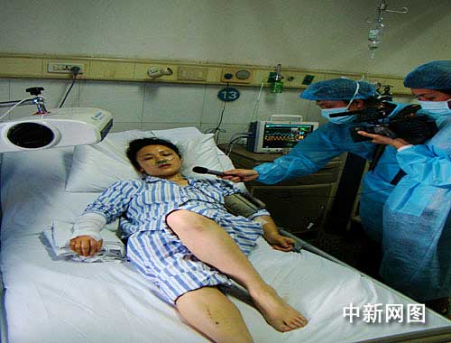 躺在病床上的谷万芳年龄约三十岁,神情憔悴,眼睛里还存留着一丝劫后余生的惊恐和慌乱。记者看到,谷万芳的双上肢受伤较严重,右手臂上缠绕着厚厚的绷带,左手臂也无法动弹;双腿裸露在外的皮肤上还能看见一尺长划伤和青紫伤痕。