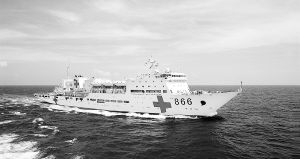 我国医院船866号系世界上首艘专门为海上救援“量身定做”的专业大型医院船,其排水量之大在同类船舶中享誉“亚洲第一”。该船在战时可为作战部队伤病员提供海上早期治疗和部分专科治疗,或为舰艇部队提供卫勤支援等;在平时则可执行海上医疗救护训练任务,也可以为舰艇编队和驻岛礁等边远地区部队提供医疗服务等。