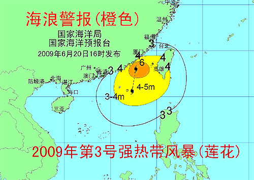 消息称,受今年第3号强热带风暴“莲花”的影响,预计20日夜间到21日白天,南海东北部、台湾海峡南部将出现5到6米的巨浪到狂浪区;台湾海峡北部将出现3到4米的大浪到巨浪区。广东省东部、福建省南部沿海将出现3.5到4.5米的大浪到巨浪。