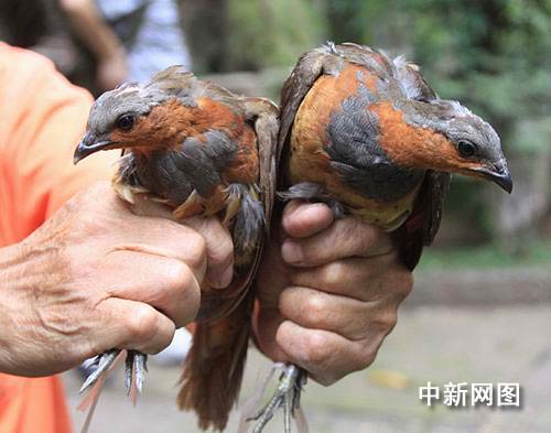 当日下午,记者见到了其中的2只竹鸡。它们虽然被放在布袋里,但野性十足,“噗”、“噗”、“噗”地跳个不停。用绳子拴着放在地上,不停地飞腾。捉在手上,它就用力挣扎着,尖尖的趾还把手指扎出了血。