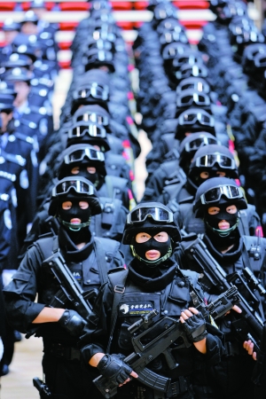 23日,首都举行国庆安保誓师大会,民警、武警、消防等3000余名代表宣誓,标志着国庆60周年安保工作全面启动。