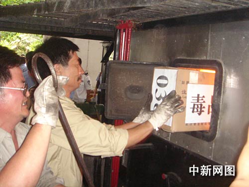 中新网武汉6月25日电 (徐金波 夏洪波 李红) 随着武汉市公安局局长胡绪鹍一声令下,近一年来湖北省内审结办理的近800公斤毒品25日被送进武钢锅炉内付之一炬。当天数万武汉市民庄严承诺:“拒绝毒品,珍爱生命”。