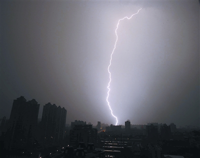 省防雷中心统计,昨晨零点到下午3点43分,武汉对地强闪高达3045次,其中早晨4时至6时,雷电活动最频繁,共有2173次。雷电强度最高达到308.5千安,如果这道雷击中电线,可让武汉近4万户的家电全部损毁。