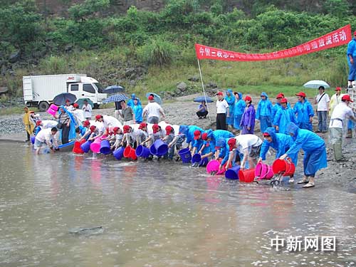 中新网宜昌6月30日电(记者 郭晓莹)三峡开发总公司中华鲟研究所29日在长江宜昌江段(江南樱桃园码头)举行了2009年度第二次中华鲟放流活动,这也是该所第49次放流中华鲟。