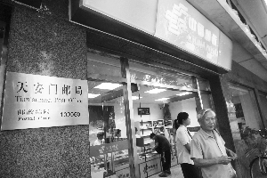 墙上悬挂着以天安门为场景的油画《开国大典》、橱窗里摆放着以天安门为主题的纪念邮册……昨天,天安门邮局正式营业,这也是天安门地区首次设置固定邮政服务网点。为庆祝新中国成立60周年,新邮局同时启用“100060”作为邮政编码。