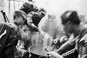 第4天上午,小分队开始了最艰难的冲刺——向西隆山顶峰攀登。没走多久,官兵都已口干舌燥。干渴的阴影,从昨天就一直笼罩着小分队。两名队员实在忍受不了干渴,随意摘了几片树叶就嚼起来润喉。不料,才走出几百米,他俩就感到恶心、头晕。军医连忙让他俩用手指轻搔喉咙,将有毒物吐了出来。幸好只是轻微中毒,俩人休息一会就缓过来了。