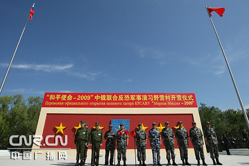 7月15日,和平使命——2009中俄联合反恐军事演习野营村举行开营仪式,2600名中俄参演官兵驻扎在这里。(中广网记者陈欣 邱翔摄)