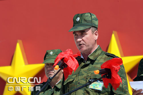 俄方代表、远东军区第五集团军参谋长在开营仪式上发言(中广网记者陈欣 邱翔摄)