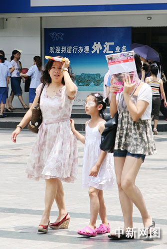 正午时分,热浪袭人,路上行人稀少。记者在街头看到,偶尔经过的行人都尽量走在树荫下或可遮阳的地方,太阳伞、墨镜、帽子齐齐上阵,“全副武装”以减少太阳直射的灼热感。