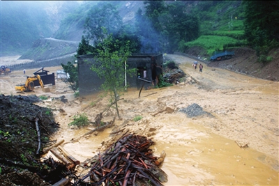 四川省防汛办昨天披露,从7月14日开始,汶川地震灾区的成都、广元、绵阳出现一次强降雨天气过程,局部地区降了大暴雨。据统计,15日8时至16日10时,成都、广元、绵阳共计有10个观测站雨量超过100毫米,3个观测站雨量超过200毫米。受强降雨影响,嘉陵江支流清江河上寺水文站16日12时42分洪峰水位505.75米,超保证水位1.75米,相应流量7520立方米每秒,洪水达50年一遇。