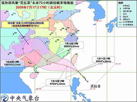 为应对台风“莫拉菲”的凶猛袭击,二十四小时内,中国气象局两次提高气象灾害应急响应命令级别。18日早中国气象局局长郑国光宣布将气象灾害应急响应级别提高至Ⅱ级。并立即派出工作组,赴现场指导气象服务和灾害防御工作。