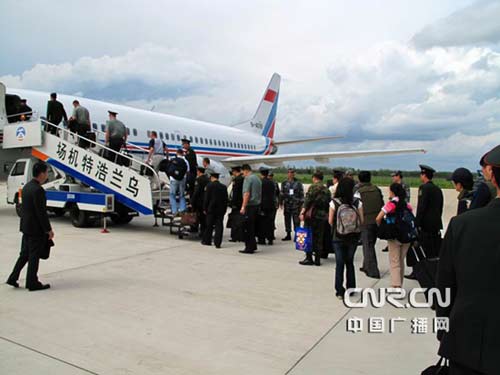 北京时间下午5点,当地(哈巴罗夫斯克)时间晚上8点,赴俄人员抵达俄罗斯远东城市哈巴罗夫斯克,在机场受到俄军方及中国驻俄罗斯大使馆人员的热烈欢迎。