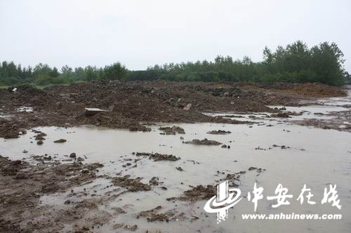 据董铺•大房郢水库水质监察科戚科长介绍,7月17日上午,水库管理处工作人员接到群众举报,称有人在往大房郢水库内倾倒渣土,水政人员及时赶到现场后看到,在水库浅滩附近已经被倾倒了很多渣土,现场还留有一台推土机,但四周一个人也没有。当天中午,水库管理处领导商量后,决定把推土机先拉回管理处,以保全证据。但下午水政人员调来大平板车来到现场时,却发现推土机已经不见了。他们随后就进行了调查走访,但始终也没有找到是谁倾倒的。