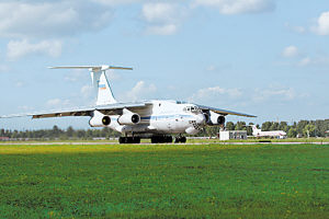 伊尔-76是目前俄空军主力运输机。它采用T形尾翼和单翼布局,中度后掠机翼,配置低压轮胎,起落架支柱短粗而结实,以保证在短跑道和粗糙跑道的起降能力。其翼展50.5米,机长46.59米。
