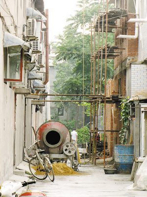 昨天上午,记者从位于谈固东街的大门进去,首先映入眼帘的是一栋刚建好的四层楼。继续往里走,道路上不时出现小型搅拌机的影子,一堆堆的沙土堆放在道路中间。
