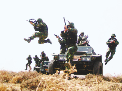 8月11日凌晨4时,兰州军区某“钢铁红军师”兵分数路,通过空中、铁路、公路向沈阳洮南合同战术训练基地实施千里立体机动,拉开了全军“跨越—2009”跨区实兵演练的序幕。