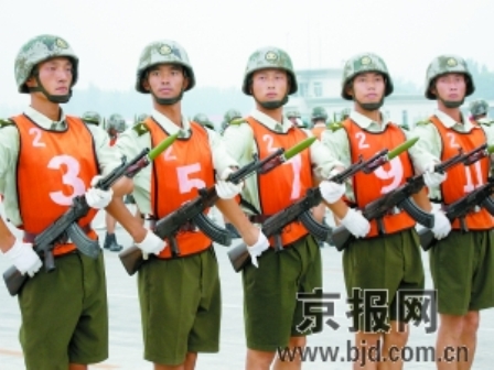 于海介绍,在国庆阅兵用曲的选择上,有关方面多次论证,反复研究确定了19首曲目。除仪式部分的《欢迎进行曲》、《国歌》外,在部队接受领导人检阅时将使用7首乐曲,其中既有以往阅兵中使用的经典音乐,如《中国人民解放军军歌》、《军校之歌》、《人民军队忠于党》等,也有进行检阅仪式的必奏音乐《检阅进行曲》,还有近年创作的优秀军旅音乐作品,如《使命》、《时刻准备着》、《当兵的人》等。而在徒步方队分列式时,演奏的乐曲将与历次阅兵一样是《分列式进行曲》。