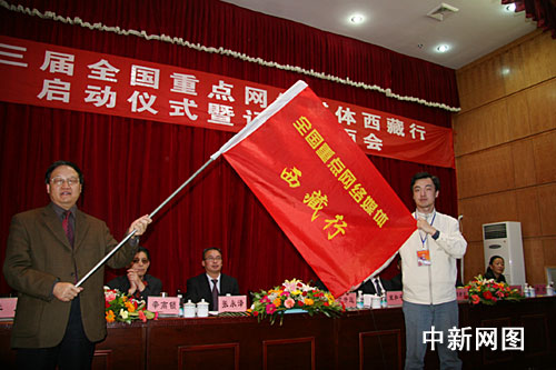 中新网9月10日电 “历史的跨越 辉煌的成就”——第三届全国重点网络媒体西藏行大型采访活动今日下午正式启动。中央和部分省市近30家重点新闻网站的近50名记者齐聚世界海拨最高的新闻发布大厅,参加了启动仪式。