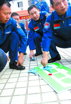 昨天下午5点,将参与此次阅兵的20多名歼击机飞行员齐聚在一起,在师长刘国胜的带领下开始了一场地面模拟演练。