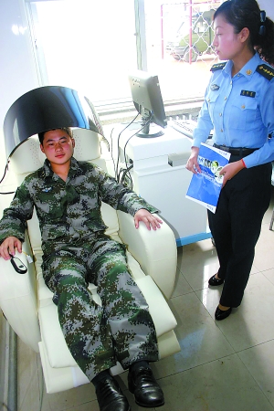 医院的心理咨询师介绍说,这套引进的心理放松设备,可以针对每一个不同的飞行员来分析其性格特点,例如其对训练生活的适应性、心理健康的状况,以及报复性、冒险性、从众性和自信心等各项内容。“根据每个人不同的特点,我们可以根据这套系统得出不同的咨询方案,来缓解他们的心理压力。”