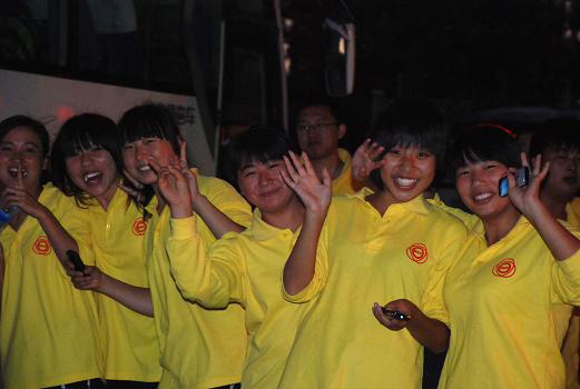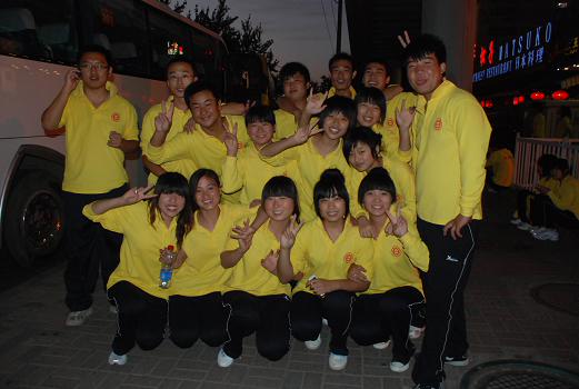 一阵快乐的笑声引起了记者的注意,原来是一群年轻人在相互用手机拍照留念。他们是来自北京市汽车工业高级技术学校的25名学生。参加大型活动对他们来说一点都不陌生,因为他们经历过今年8月8日在“鸟巢”及奥林匹克景观大道举行的“三万人演太极破世界纪录”的活动。“8月8日的活动结束后,我们就开始准备国庆舞蹈了。大家用了3、4天就学会了。”不过接下来,同学们放弃暑假,用了整整一个月来精益求精。这些90后、80后的大孩子们开朗热情,对于第一次实地演练检验一个多月来的努力成果显得信心十足兴奋不已,他们说,虽然在室外顶着日头训练时挺辛苦,但是大家都觉得“特别自豪,特别快乐”,因为“我们能代表北京、代表中国向全世界展示我们国家的繁荣昌盛,这是非常难得的经历”。(记者 刘莉)