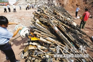 昨日,市公安局对今年以来收缴的3378支各类非法枪支、一批管制刀具进行统一销毁。各区县公安机关也对收缴的42吨非法爆炸物、1万多枚雷管进行了销毁。