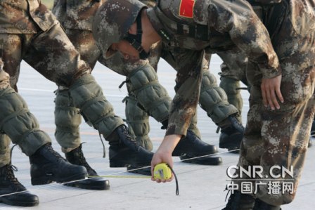 标尺对队列训练必备的法宝 中广网记者彭洪霞 摄
