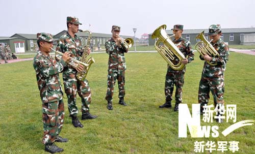 在阅兵村里,活跃着这样一支队伍,虽然成员不多,但是却个个多才多艺、身怀绝技,经常利用业余时间,深入阅兵训练现场为受阅官兵演出送欢乐。这支队伍,就是二炮某导弹方队业余军乐表演小分队,也是这座特殊村落中唯一的一支军乐队。
