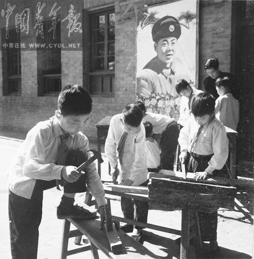 1963年6月,西安市青年路小学四年级少先队员,响应毛主席号召,向雷锋同志学习,成立雷锋修理小组。 记者 贾化民摄