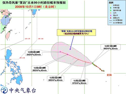 预计,“茉莉”将以每小时15~20公里的速度向西偏北方向移动, 强度继续加强,将于1日晚些时候加强为台风,2日有可能加强为强台风。