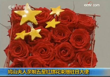 崔天凯还透露了一个小细节:鸠山夫妇9日抵达北京时,他代表中方去机场迎接,意外收到一份首相夫人亲手制作的礼物。“他们二位一出机舱门,我就看到首相夫人手里拿了一束花,下来后她就交给我,说这是16朵花组成的,上面还有五颗星,就是中国国旗的图案。”