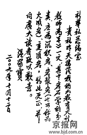 今年教师节前夕,温家宝总理到北京市第三十五中学看望师生。上午听了5节课,下午同北京市部分中小学教师座谈。下面是温总理更正信所涉及的讲话内容:
