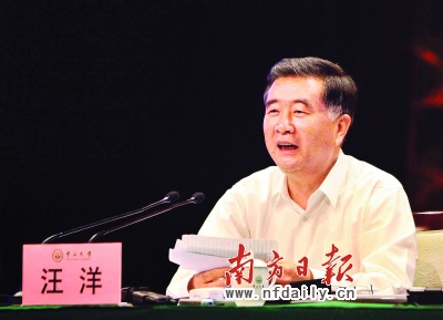 汪洋:中山大学是广东高等教育的领头羊,是广东经济社会发展的重要依托,希望中山大学能够紧密结合高等教育实际,面向世界、面向未来、面向现代化,努力进行高教改革,培养出能适应世界竞争需要,能适应未来现代化需要的有用之才。
