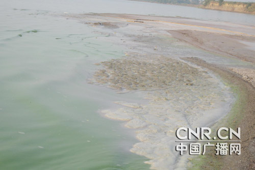虽然,开源石料厂今天停产,排污不再进行,但是记者依然在巢湖边的污水口看到以前排污留下的种种“罪状“,该厂的排污口直径约20厘米,以前洗砂后的废水就顺着巢湖广阔的湖岸的接排入湖内,现在湖岸边已经形成一片污水区,与湖中心清澈的水形成鲜明的对比,又稠又粘颜色暗黑发散着难闻的味道。记者顺着湖边的排污道走了一圈,身上马上被一层灰笼罩,也让人马上想到平时这个厂开足马力生产时候的乌烟瘴气以及对环境造成的恶劣影响。