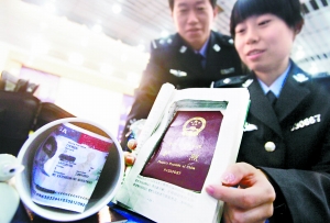 针对偷渡犯罪的猖獗,边检总站加大培训民警识别偷渡人员的力度,同时采取高科技检测手段识别伪假证件。记者在现场看到,目前民警使用的最新式检查护照签证仪器,最小只有鼠标大小,可随身携带,还有快速“刷”护照的证件阅读机,民警把护照在机器上一“刷”,读取信息同时就能识别护照上的防伪标识。