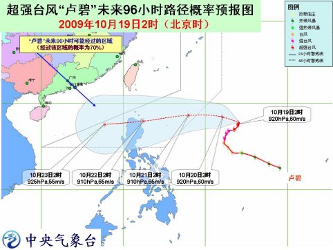 预计,“卢碧”将先以每小时5公里左右的速度缓慢向偏北方向移动,19日中午以后将逐渐转向西偏北方向移动,移速逐渐加快,强度还将有所增强。受“卢碧”和冷空气的共同影响,19日白天到夜间,台湾海峡、台湾以东洋面、巴士海峡、巴林塘海峡、台湾沿海、福建沿海的风力将逐渐加大到7-8级,部分海域和地区阵风可达9-10级。