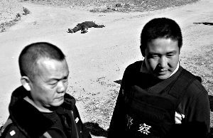 昨日在和林格尔县舍崖乡乡政府附近的一个丁字路口,一辆农用三轮车侧翻在路口旁的沟底里。在距离农用三轮车几百米的空地上,躺着越狱犯高博的尸体。他穿着灰色上衣,蓝色裤子,仰面朝天躺在地上,脸上沾满了血迹。