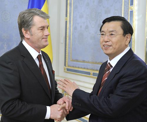 中新网10月28日电 据外交部网站消息,10月27日,中国国务院副总理张德江当地时间27日在乌克兰首都基辅会见了乌克兰总统尤先科。