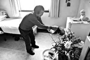 四季青敬老院一共住有480位老人,大多数是双人间,有的住单间。在每位老人的房间里,都装有一个圆形的按钮,上边标注着高中低三个档位,老人可以拧动圆钮,自行调节温度。“老人的房间最高能调到25℃。”刘院长说。