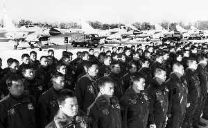 昨日,八一飞行表演队所在空军航空兵某师,为近日将举行的飞行表演誓师。