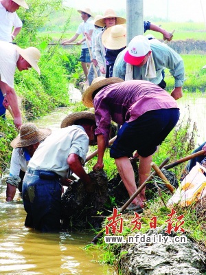 在饶平县钱东镇,记者了解到,该镇的沟渠已80%淤塞,该镇的主干渠三支渠肩负着全镇一半面积农田的灌溉,但是不少地段居然已经淤积了一米多高的淤泥和垃圾。