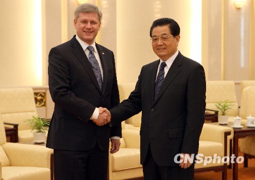 中新网北京12月3日电 (记者 张朔)中国国家主席胡锦涛3日下午在北京会见加拿大总理哈珀。